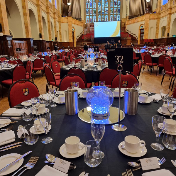 Choose from our moonballs, crystal cones, crystal globe centrepieces, gold mirrorballs, bubble ball bowls, star centrepieces and many more. Our latest set up was for 33 bubble ball bowls at the Great Hall, Birmingham University.