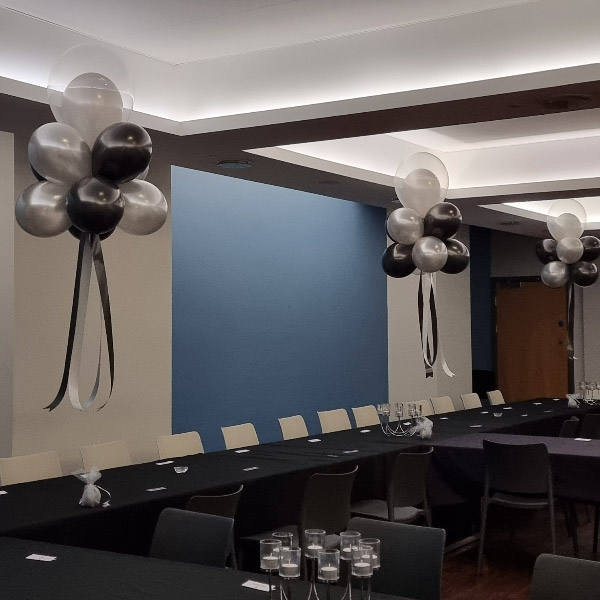 Balloon decorations for school proms in Rugby, Coventry & Warwickshire, Leicestershire, Northamptonshire and the Midlands. Let us decorate your school prom or school leavers ball with balloons. We will also deliver and set up at your venue.